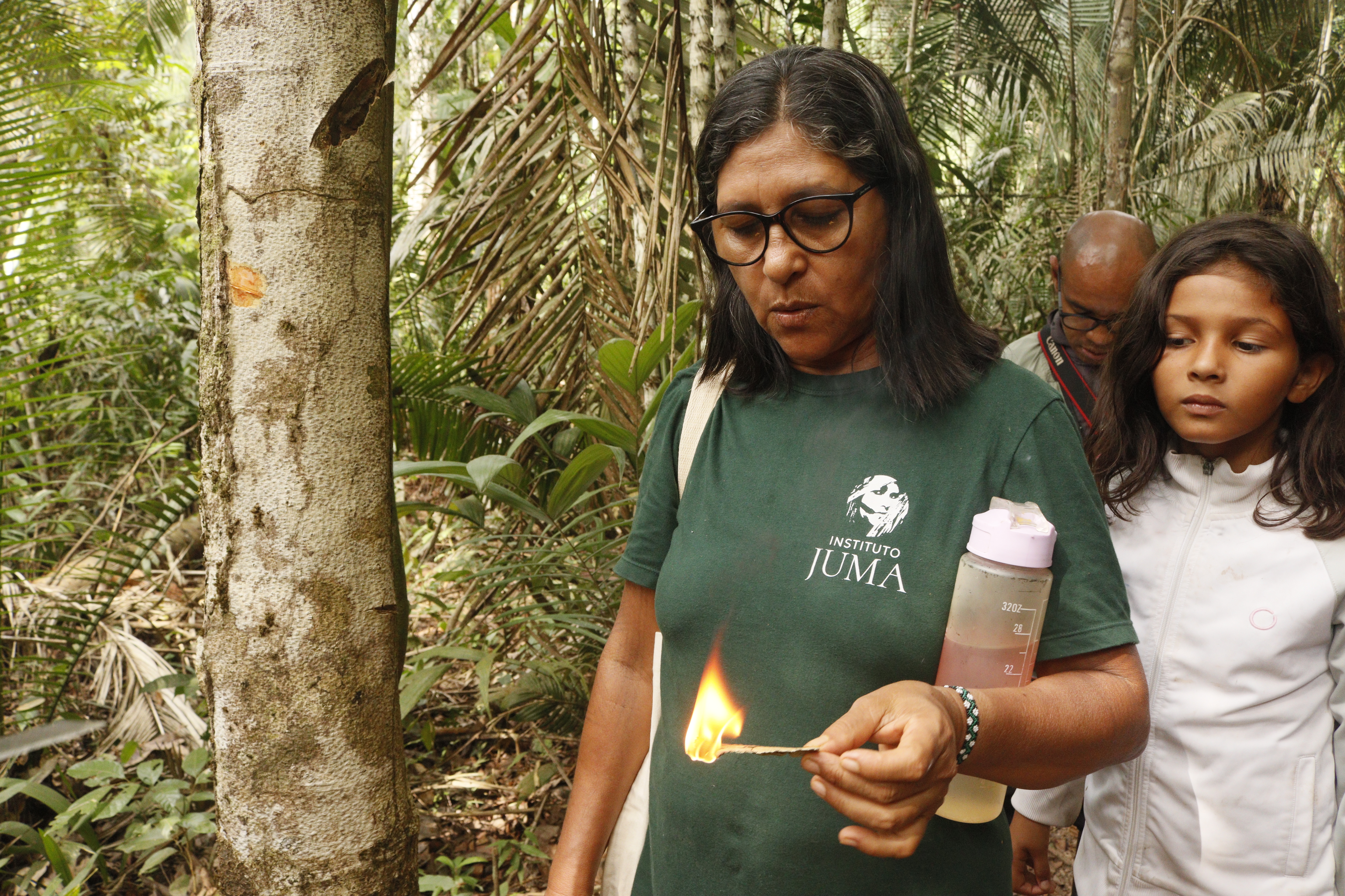 The activity is part of the “Ipá-Supá” Herbal Medicine House project, which aims not only to produce natural remedies from plants collected and cultivated in the village but also to promote knowledge exchange and preserve traditional culture based on healing through the forest. “Ipá-Supá” is an initiative of the Juma Institute, inspired by the dream of the elder and Indigenous leader Maria Lúcia Xipaya to work with medicinal plants and share the knowledge gathered throughout her life. “Every step we take from here on is one of fulfillment and happiness for me” said Dona Lúcia, as she welcomed family and friends during the workshop.